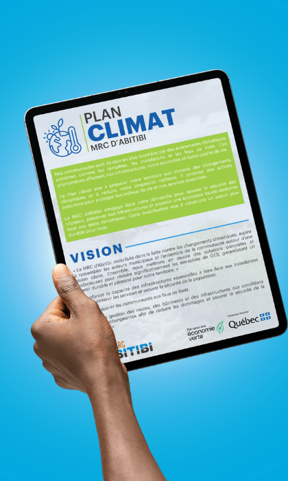 Dans ce contexte, la MRC d'Abitibi élabore un plan climat afin de mieux protéger les citoyens, renforcer la résilience de nos infrastructures et soutenir une économie locale durable face aux aléas climatiques.