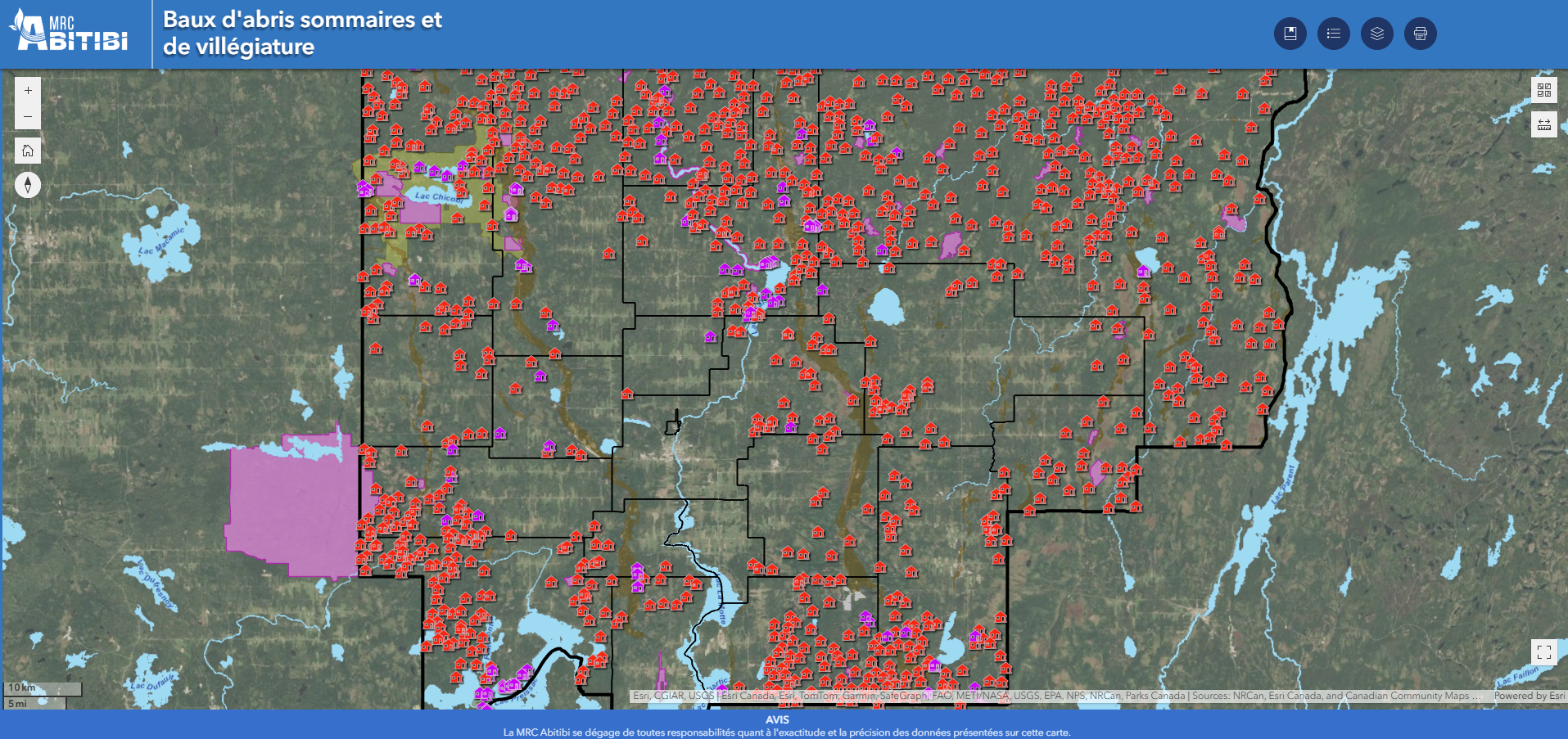 Depuis le 1er février 2015, la MRC d'Abitibi est responsable de la gestion des baux de villégiature (chalets) et les baux d'abris sommaires (camps de chasse) situés sur les terres du domaine de l'État (terres publiques) de sa MRC.